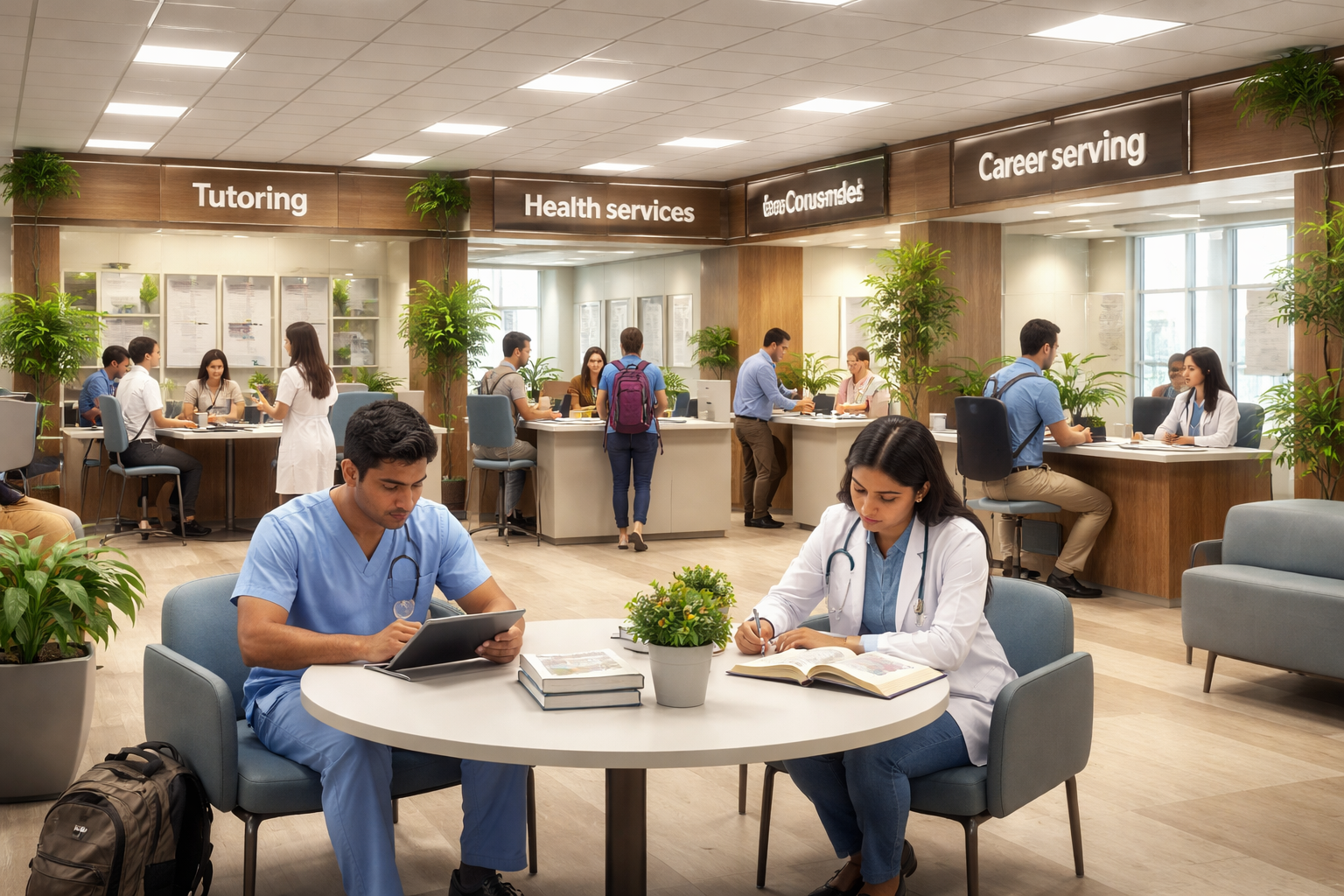 - Study Spaces: Quiet and collaborative study spaces to help students focus on their studies or work in groups.